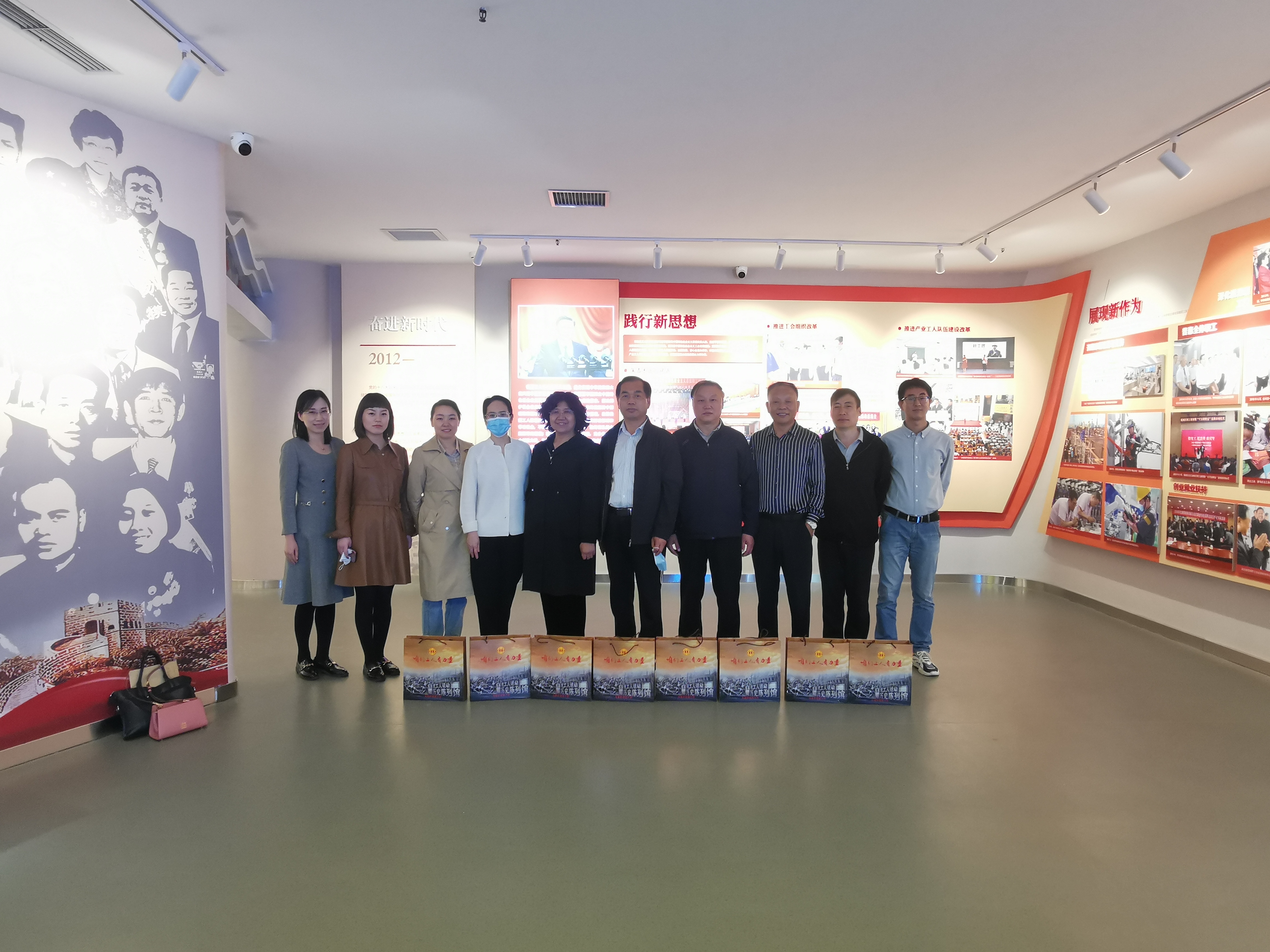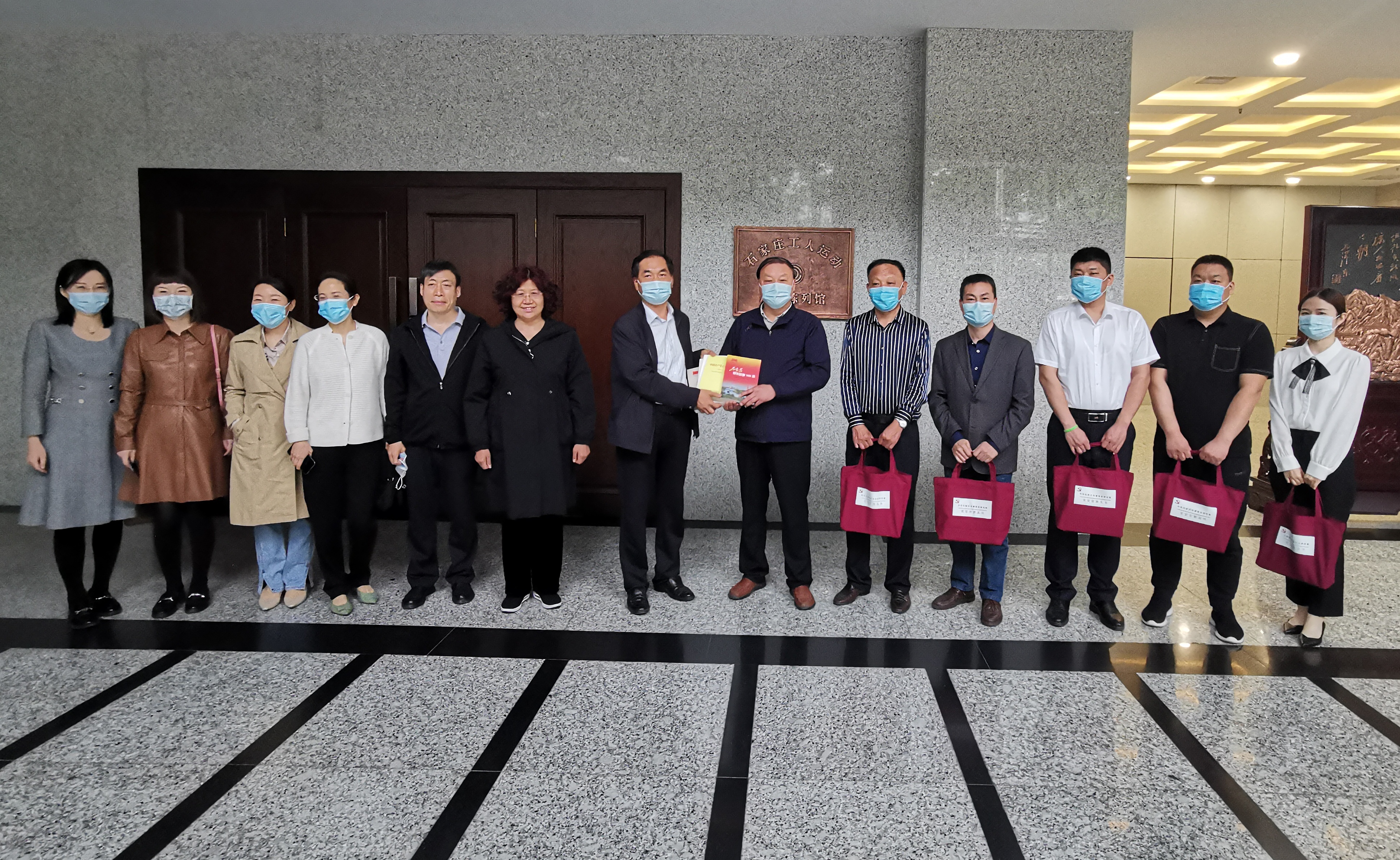 在参观石家庄工人运动历史陈列馆过程中,一行人学习了中国共产党领导工人阶级在革命、建设、改革各个时期的光辉历程,了解了曾为石家庄工运事业发展壮大做出突出贡献的革命先烈、英雄人物、劳动模范的感人事迹,重温了石家庄工人阶级在我市经济社会发展中的卓越风采,进一步增强了坚决拥护“两个确立”、做到“两个维护”的自觉性。双方人员相互交流了党建工作经验和做法,一行人对8932彩集团工运史馆的资料收集、文图编撰、展馆设计工作,以及机关党委利用工运史馆巩固和拓展党史学习教育给予了高度评价,并赠送了市委党史研究室编纂的党史宣教丛书。